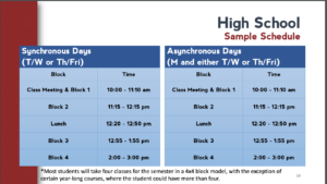 Under the yet to be approved plan, each grade level would start and end virtual learning at different times.