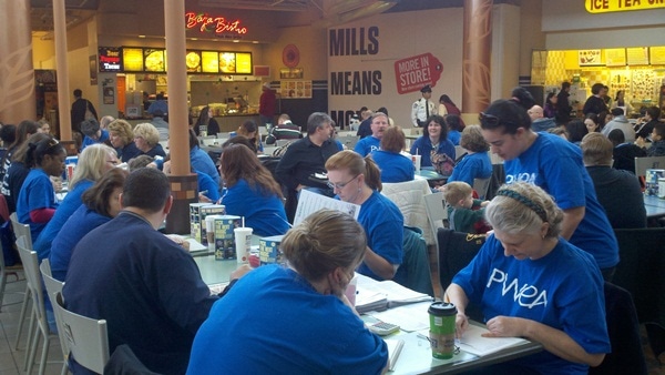 Participants here wore blue t-shirts displaying PWEA, for the Prince William Education Association.