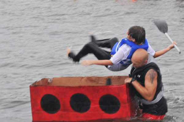 This year’s Titanic award – the boat voted most likely to sink – went to “The Brick,” a small, sturdy boat that was glued together about four days before the race, painted to look like a red Lego block. It sank as soon as it went into the water.