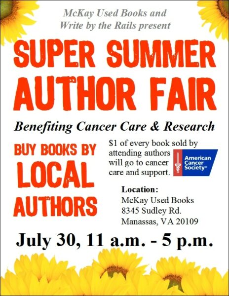 The “Super Summer Author Fair” will take place from 11 a.m. to 5 p.m., July 30, 2016, at McKay Used Books, 8345 Sudley Rd., Manassas, VA 20109.