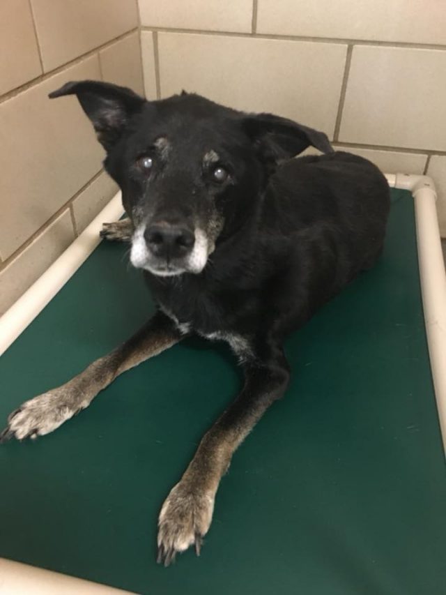 Earlier today we picked up a 13 year old ( or older) female shepherd mix . She has a few growths on her read end , and blind . She was found wandering near Kincaid Lane . If you recognize this old gal , please call the Shelter at 540-658-7387