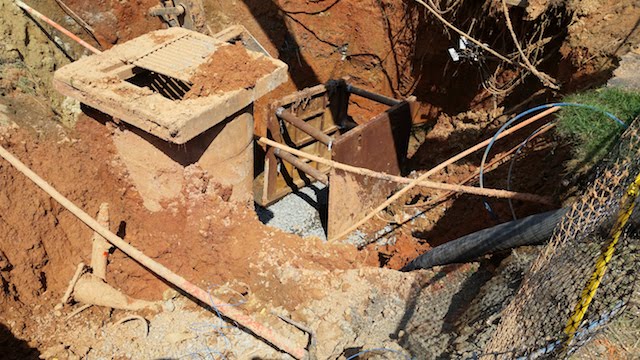 On Friday, crews excavated soil and worked to install a trench box in the sinkhole that will allow crews to use a vacuum truck to remove sediment from the blocked drainage pipe. Once the sediment is removed, crews can assess the pipe’s condition and determine if it needs to be repaired or replaced.