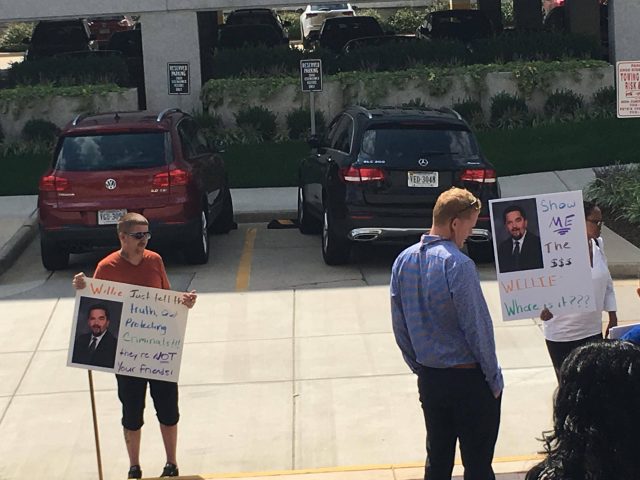 The protestors came to Deutsch’s office in Alexandria, where he works in public relations.