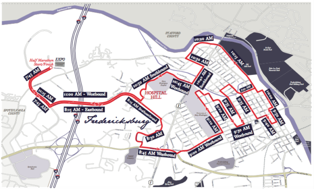 Fredericksburg police will close these streets for the event at 6:30 a.m. Sunday: