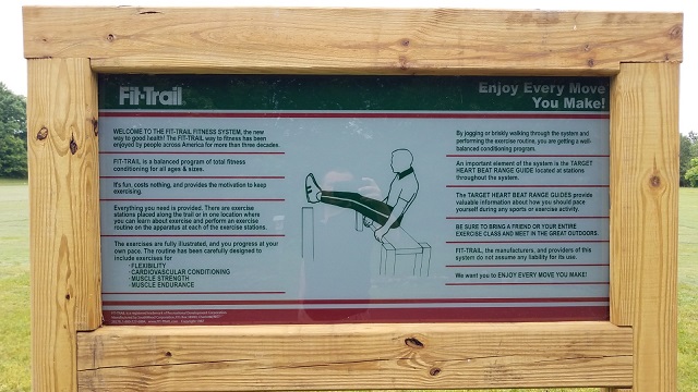 The equipment is simple and uses a person’s body weight for resistance. There is signage at the beginning and end of the trail, as well at each station with instructions on how to use the trail.