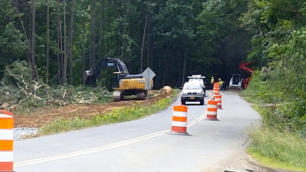 Today, crews are working to take down trees that lie in the path of the soon-t0-be straightened road. When finished, the improved Poplar Road will have two 11-foot lanes, six-foot graded shoulders, three feet of which will be concrete.