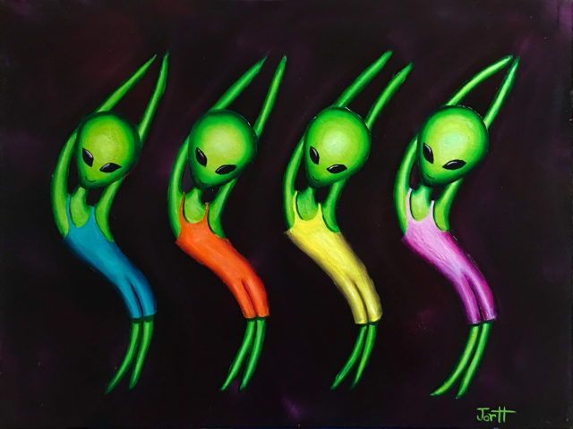A Carnival of the Absurd features new paintings that blend themes of the carnival sideshow, Sunday morning cartoons, conspiracy theory and just plain weirdness in a way that only John can present them. Hartt’s oddball style can be described as a mix of lowbrow art, pop surrealism, and cartoonism.