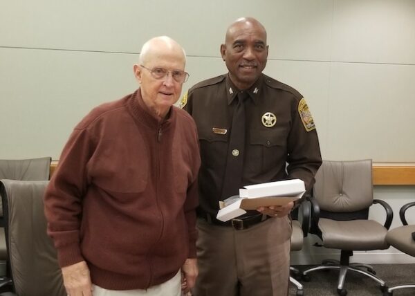 Sheriff Glen Hill presented Paul Ebert with a plaque honoring his long service on the Prince William County Jail Board.