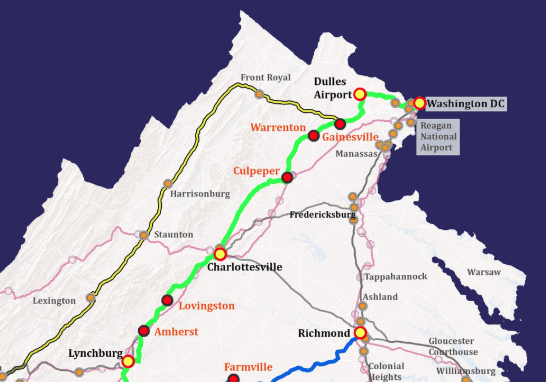 A 2019 study showed the new for the newly proposed routes between Danville and Washington, D.C., and Martinsville to Richmond.