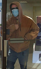 The Stafford County Sheriff’s Office is asking for the community’s assistance in identifying the suspect. He is described as a white male with a beard. The suspect is between 5’10” and 6’3” tall and weighs approximately 200 pounds. He was wearing a brown Walls brand hooded jacket, blue jeans with a stain on the left pant leg, black sunglasses, and a blue surgical mask.