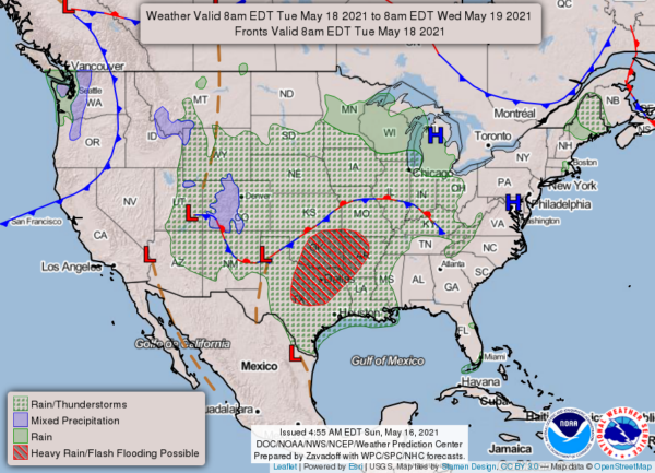 Mostly clear, with a low around 55. South wind 3 to 5 mph.