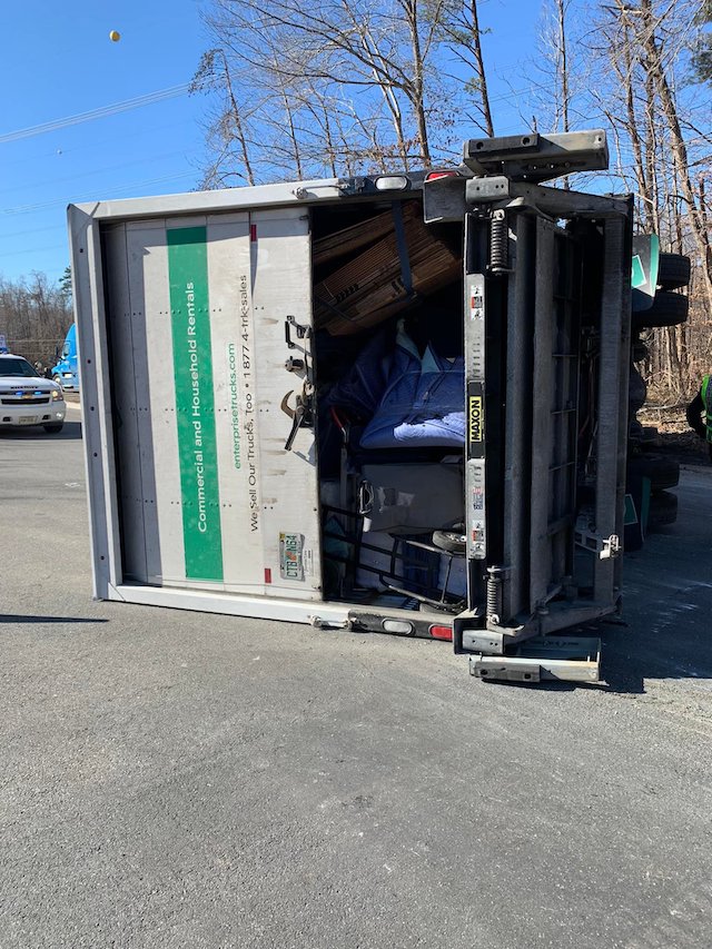 A box truck overturned at the Stafford County line today.