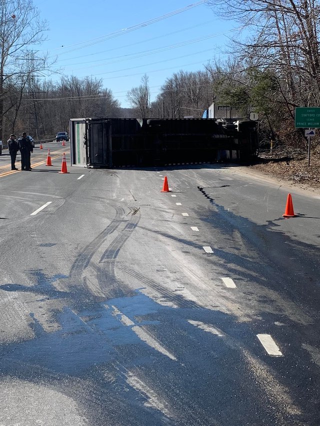 A truck overturned on Route 1 near Quantico about 11 a.m. Sunday, January 22, 2022. [Photo: Stafford County Sherriff’s Office]
