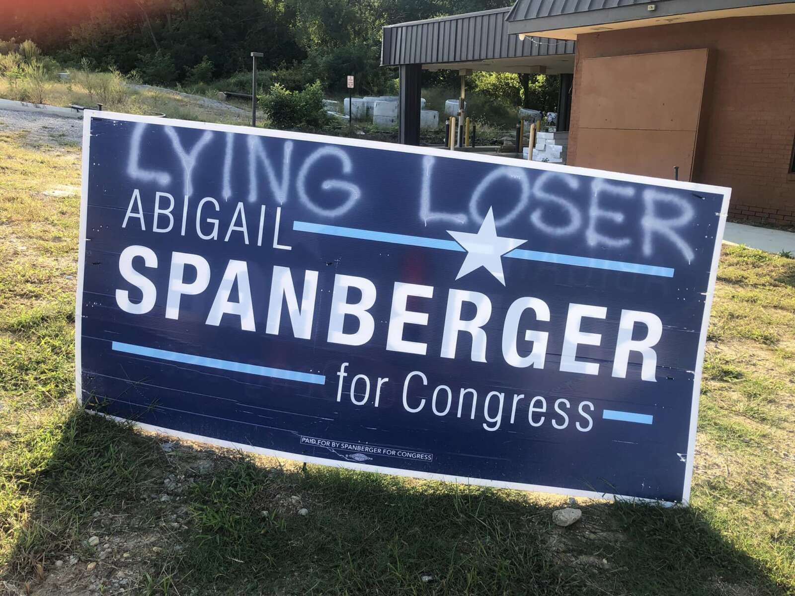 Some Abigail Spanberger campaign signs were found defaced this morning in Woodbridge.