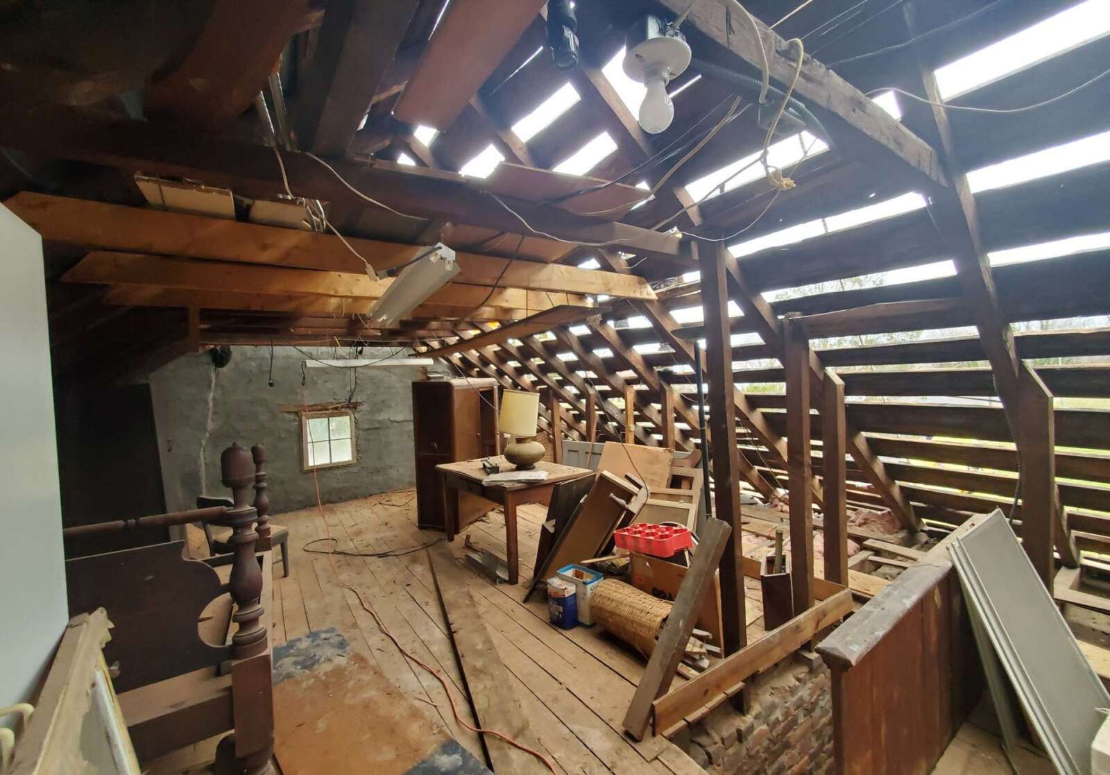 Over the past few months, we have been able to do a lot of work on the Williams-Dawe House to ensure its preservation! We cleared the vegetation off the house and the surrounding area so that you could see it. We fixed the roof, windows, and damaged chimneys to protect it from the elements, and we cleaned out the interior of the house so that we can see what we are working with on the inside. It’s always great to see preservation in action so here are some before and after photos!