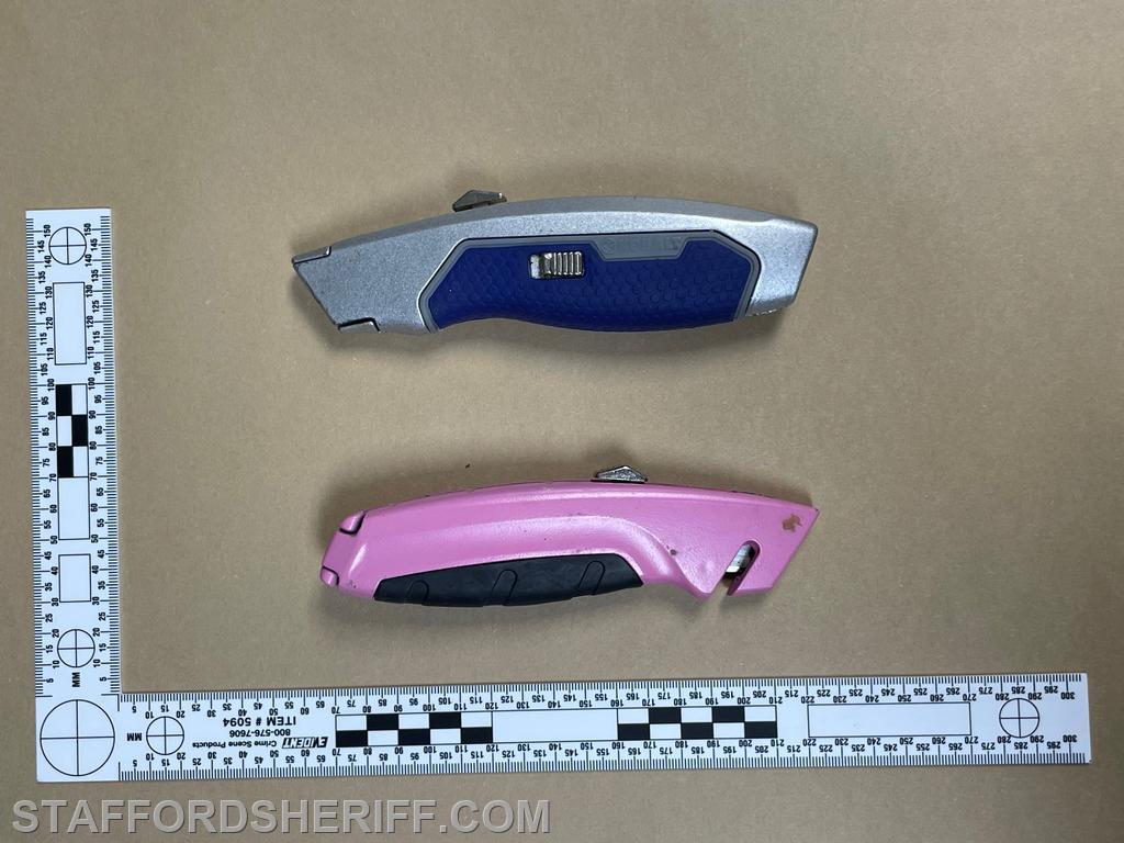 “Detectives were able to identity one of the suspects as Peter Brown, 23, of Stafford. On June 9th at approximately 4:07 p.m. the Stafford County Sheriff’s Office’s SWAT Team conducted a high-risk traffic stop on Brown’s vehicle, as detectives in CID executed a search warrant on his residence. Brown was taken into custody without incident. Knives that were described in the robberies were located, as well as, numerous personal belongings of the victims.”