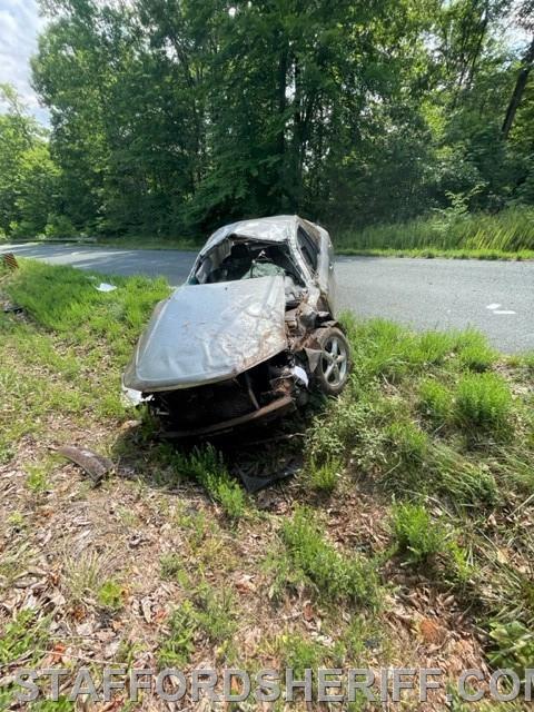 Stafford County Sheriff’s Office: “On June 13th, at approximately 10:48 a.m., Deputy J.L. Jones responded to Kimberwick Lane [in North Stafford] for a single-vehicle auto accident. It was advised a vehicle was currently in a ditch. When Deputy Jones arrived on the scene, he located the mangled vehicle partly still in the roadway.”