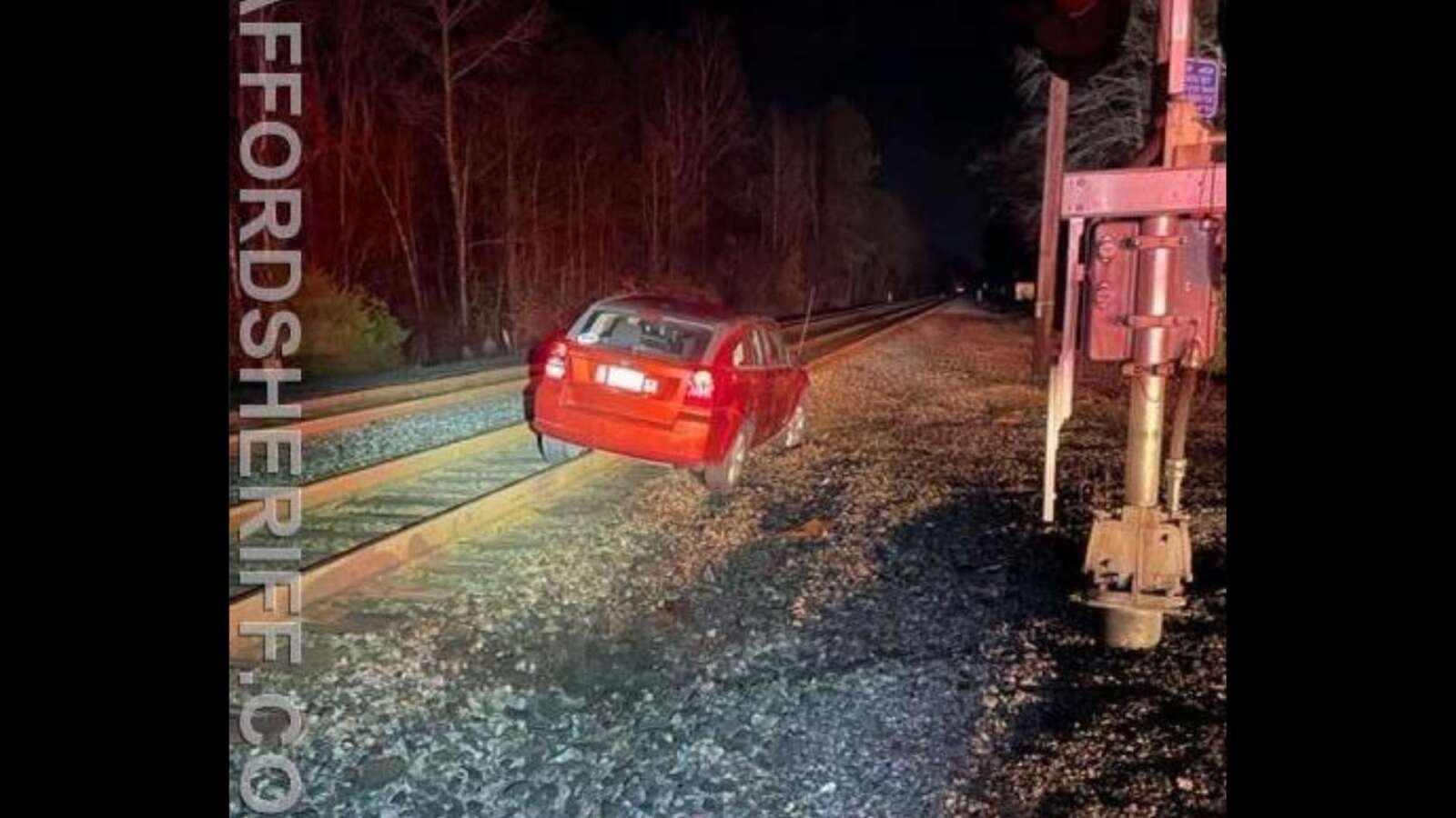 “Trains had to be shut down while the vehicle was removed. While conversing with the driver, Deputy Trainor noticed several signs of intoxication. The driver also admitted to consuming “some vodka” prior to driving. After conducting field sobriety tests, the driver was issued a one-way ticket to jail. He was charged with driving under the influence second offense within five years with a blood alcohol content greater than .2. He was held at Rappahannock Regional Jail on a $1,500 secured bond.”