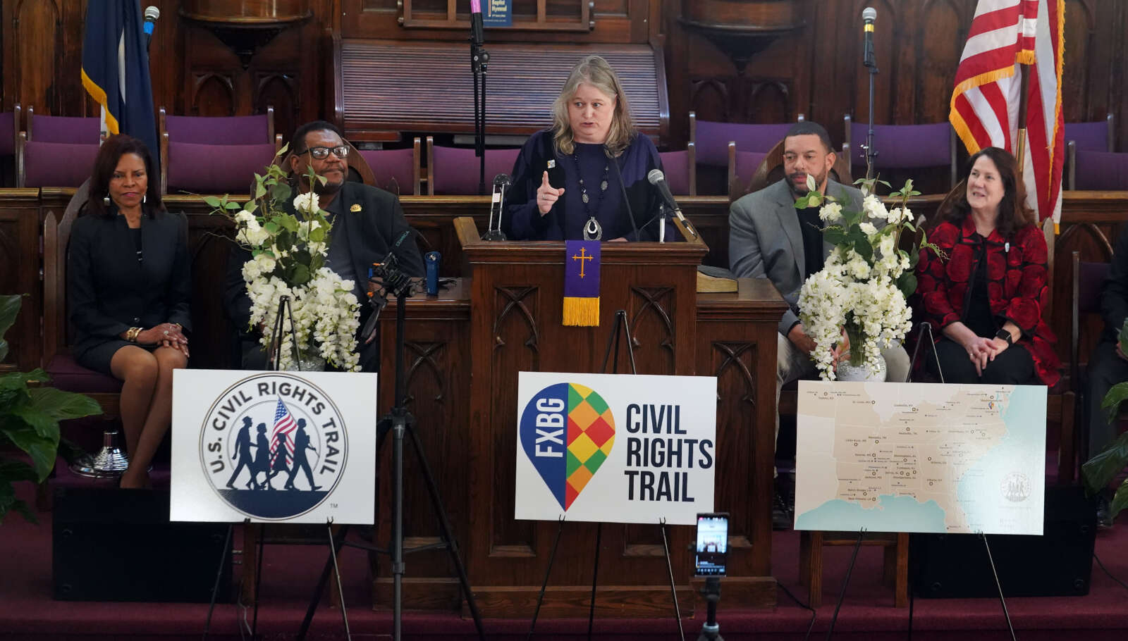 Addressing the packed sanctuary, Rita McClenny, President and CEO of the Virginia Tourism Corporation, emphasized the significance of these landmarks, underscoring their dual role in local and Virginia history. McClenny highlighted the importance of preserving and understanding shared history, stating, “When you walk up and down these streets where presidents have walked, where the enslaved have walked, where soldiers have walked … if we all can preserve and appreciate and understand that what we have in common is so much greater than what divides us.”