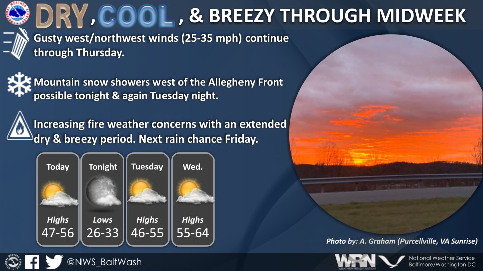“As we bid adieu to the cold front that swept through yesterday evening, a general north to northwesterly flow has taken hold in its wake,” remarked a weather service forecaster.” “This boundary has also ushered in gusty winds, with some areas experiencing gusts of 25 to 30 mph, particularly in southern Maryland. However, we anticipate these gusts to diminish in the coming hours.”