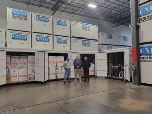 Stacks of Storage Units with Toys for Tots Collection Boxes