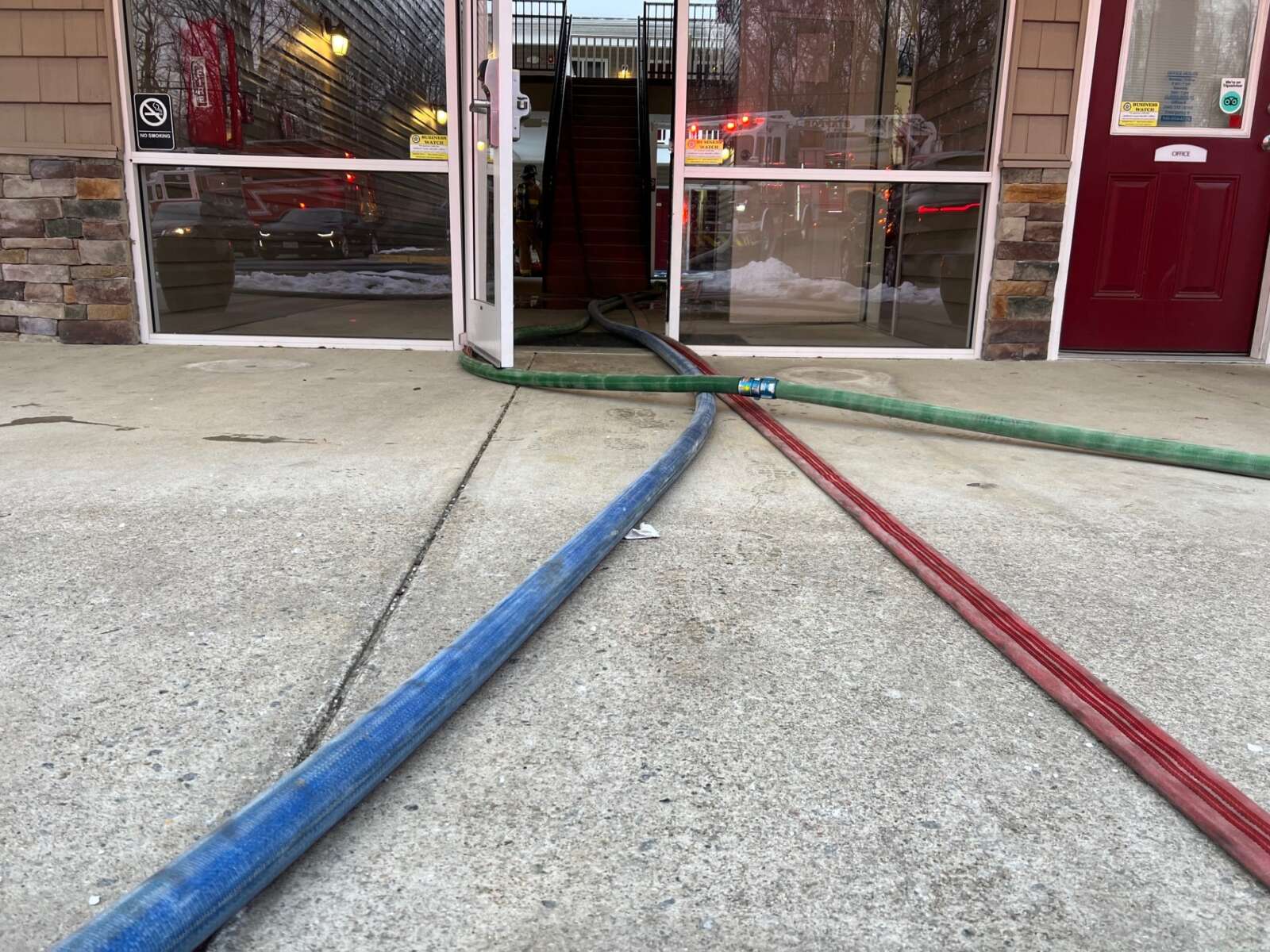 Stafford County Fire and Rescue and Quantico Fire and Emergency Services responded to a commercial waterflow alarm at the Affordable Suites of America near Richmond Highway on Thursday morning. The initial alarm was upgraded to a structure fire after reports of flames in a first-floor unit.