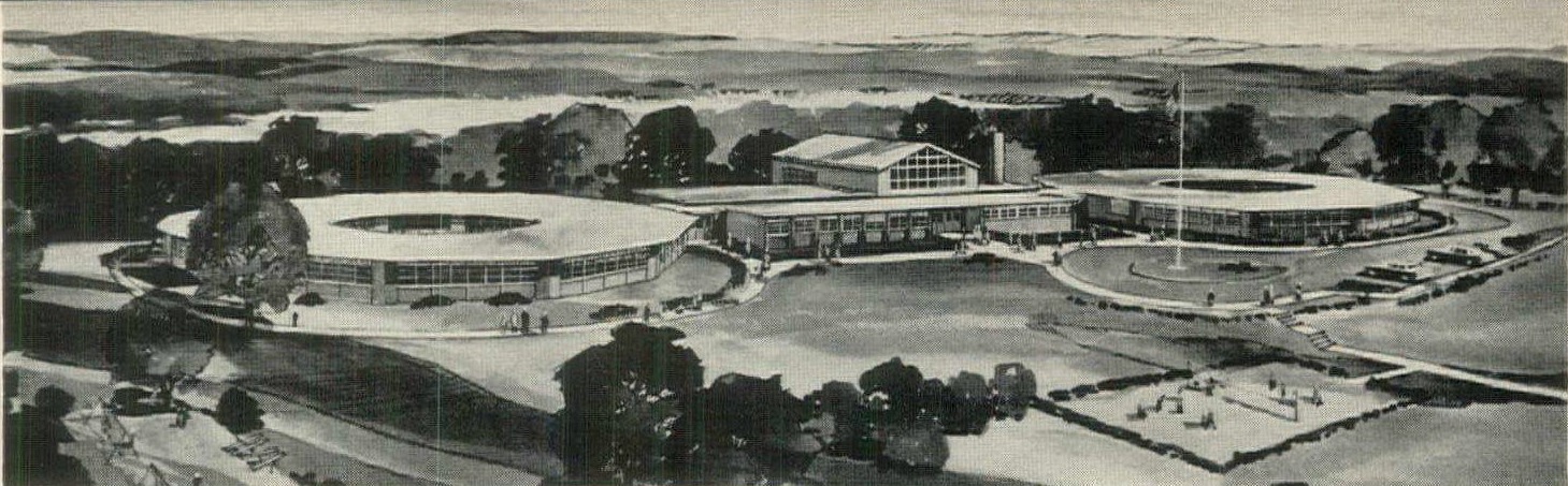 Loch Lomond Elementary School opened in 1961 to serve the growing communities on the north side of Manassas. The land, once part of the historic Ben Lomond property, was donated by developer C.D. Hylton. Its design was unusual—a central main building connected to two circular classroom wings surrounding a courtyard, linked by open walkways.