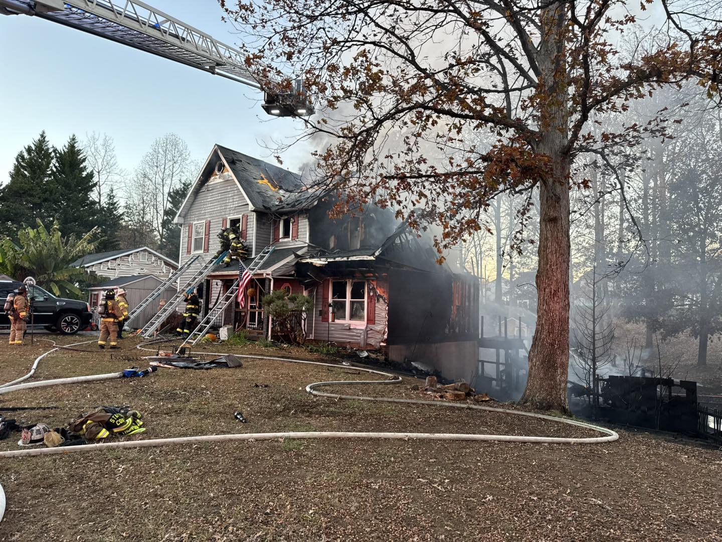 Crews arrived within minutes to find heavy fire coming from the side and rear of a two-story home. Firefighters battled challenging conditions, including strong winds, flaring propane tanks, and unstable interior floors. All residents evacuated safely before crews arrived, and no injuries were reported. The American Red Cross is helping the displaced family.