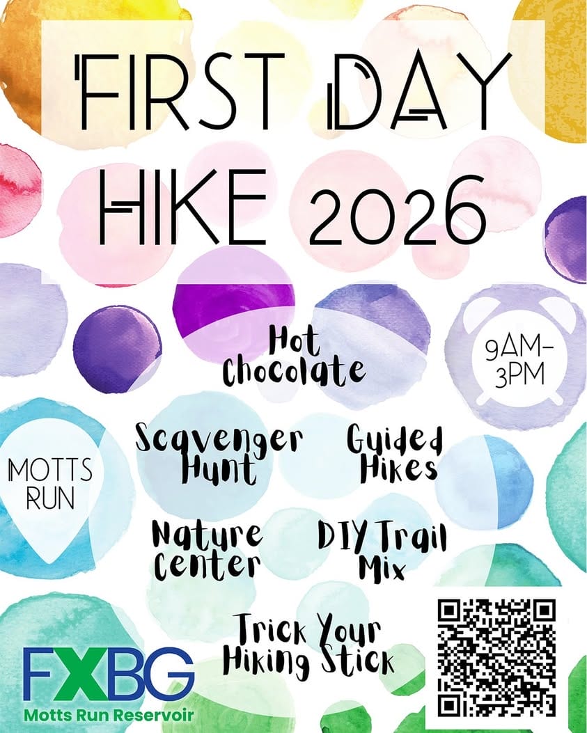 “Kick off the New Year on the right foot with a First Day Hike,” City of Fredericksburg announced. “Motts Run Reservoir will be open special for the occasion on Thursday, January 1 from 9 a.m. to 3 p.m.”