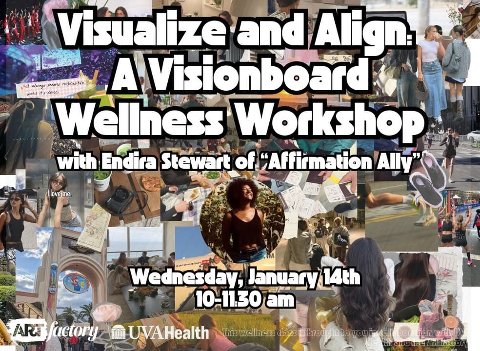 “2026 is the year to reclaim your physical and mental health, and our newest wellness workshop is the perfect way to help organize your thoughts so you can conquer the new year,” Virginia ARTfactory announced. “‘Visualize & Align: A Vision Board Workshop’ is a reflective, hands-on collage workshop led by Endira of Affirmation Ally, in collaboration with The ARTfactory’s Artful Wellness series.”