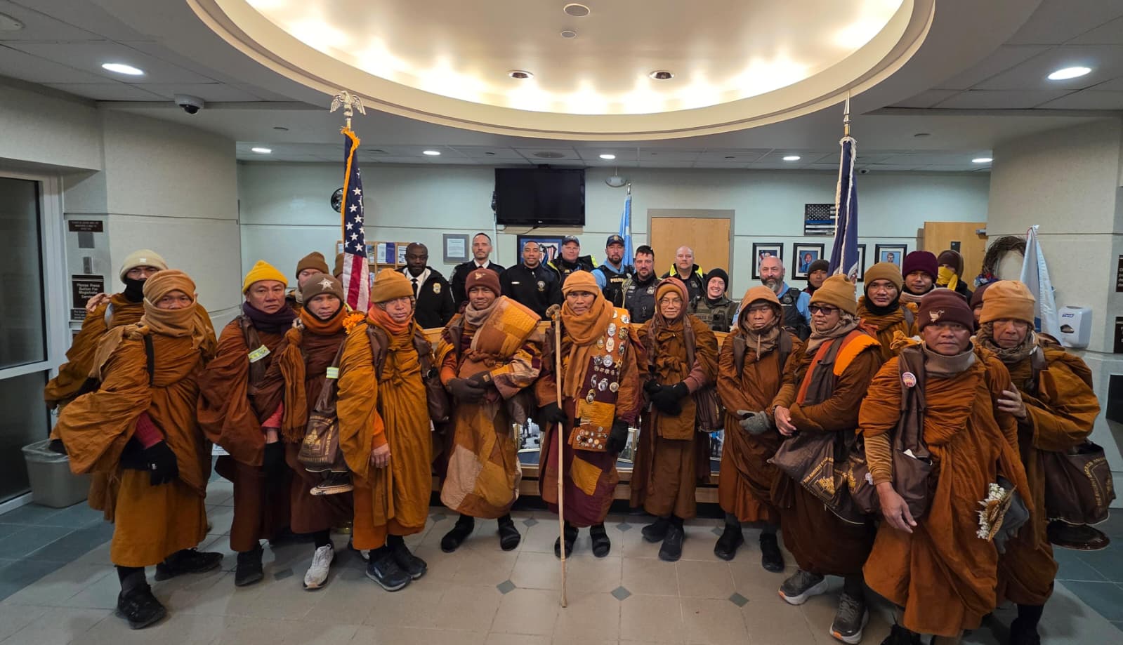 Prince William County Police used social media to provide real-time updates on the monks’ progress, asking residents not to interfere with the march and noting that the group remained under police escort as they traveled through the county.