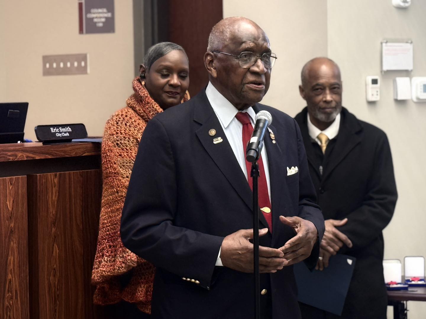 At 95 years old, White joined the podium at the invitation of council members during the ceremony, where Mayor Michelle Davis Younger read the proclamation recognizing February as Black History Month and highlighting the enduring contributions of African Americans to the city, the Commonwealth, and the nation.