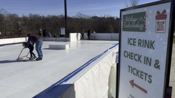 Despite the delay in the ceremonial opening, plans remain in place for a month-long holiday skating experience in Downtown Fredericksburg. From Friday, November 29, through Sunday, December 28, visitors can glide across a synthetic, eco-friendly skating surface installed at Riverfront Park.