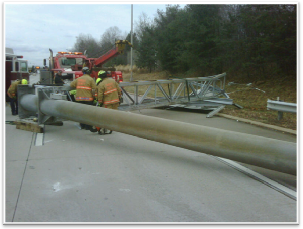 Fairfax County, Va. — When heavy winds kicked up snow in our area over the weekend blew into the area, a large highway sign also collapsed on Interstate 66.