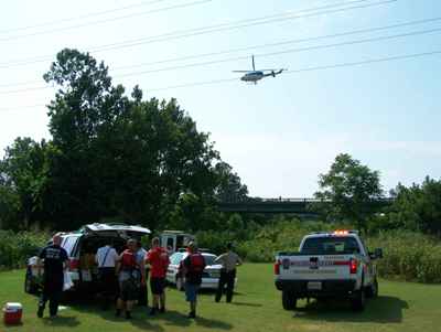 At 11:05 AM on Saturday, August 6, several 911 calls were received reporting that a house in the 11700 block of Lake Forest Drive was on fire. The house is in the Buckhall area. Reports included that there were occupants still in the house. Fire and rescue units arrived on the scene reporting fire showing from windows on two sides of the house. Fire crews began immediate entry and located a person in the burning house and rescued them. At the time of the fire, three adults and two teenagers were home. Two people were transported to a local hospital and one was flown to a regional hospital for treatment. The house is 1 1/2 stories with a basement, and damage is estimated at $100,000. The origin and cause of the fire is under investigation by fire marshals and the police. Water to fight the fire was brought by tankers, and a “dry hydrant” on Split Rail Drive was utilized. Water supply was adequate to fight the fire.