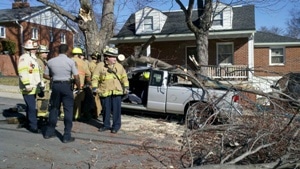 Alexandria section of Fairfax County after a large tree branch fell onto a Chevrolet S-10 pickup.