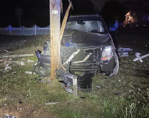 “Deputy S.C. Jett responded to the crash as other deputies searched the area. It was determined the vehicle was traveling Northbound on Truslow Road when it crossed the double yellow line, and exited the roadway. The vehicle drove through a residential fence, before ending its journey when it struck a power pole.”