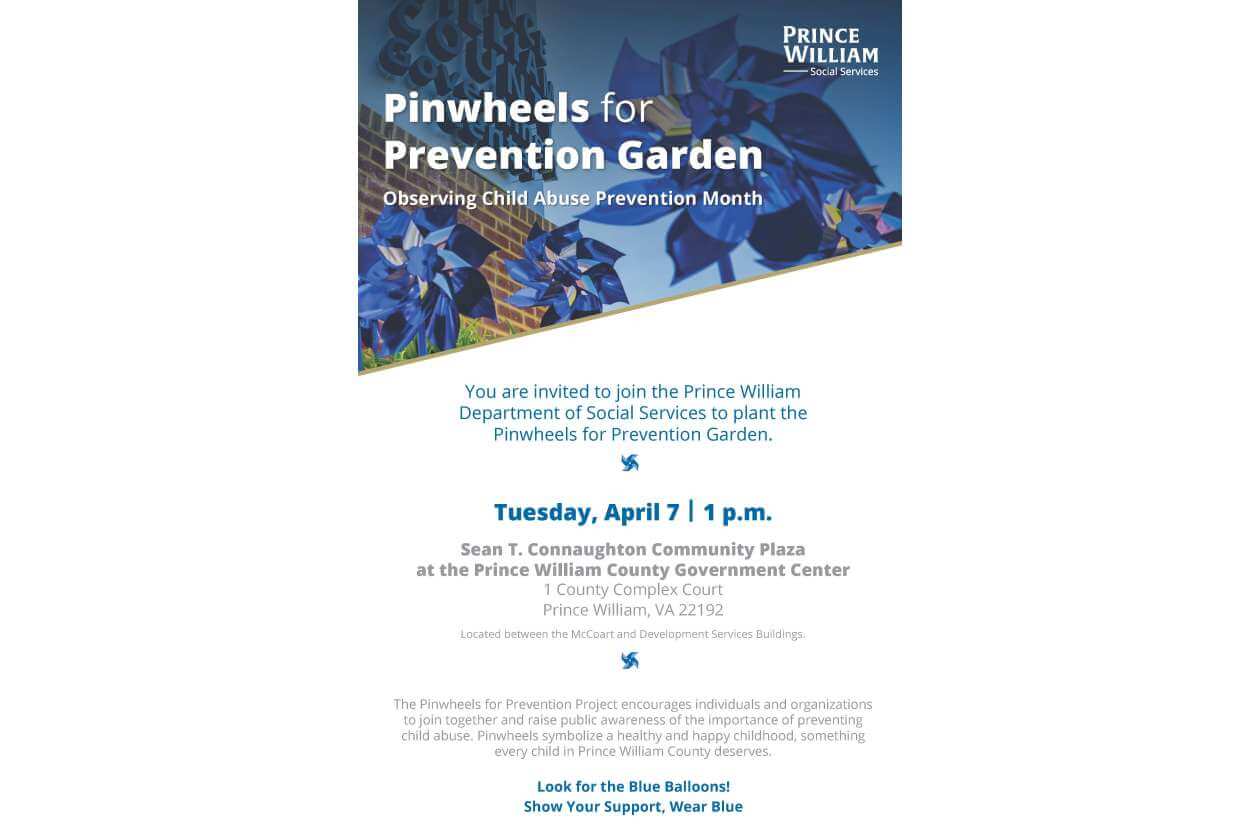 The community is invited to join the Prince William Department of Social Services to plant the Pinwheels for Prevention Garden.