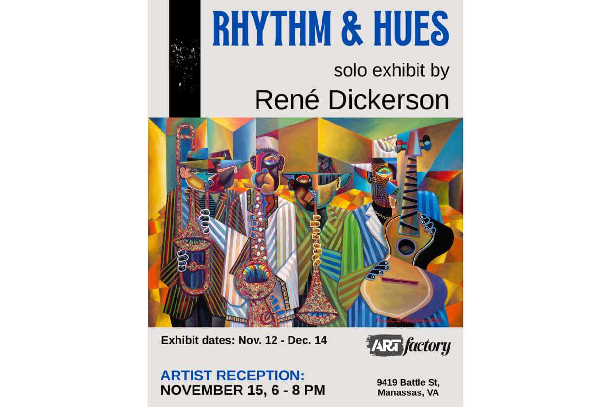 The ARTfactory proudly announces a special exhibition featuring the celebrated artist René Dickerson, whose visionary works bridge the worlds of fine art, jazz, and Motown. The exhibition, titled “Rhythm & Hues”, will open on November 12 and run through December 14 at the ARTfactory. An Opening Artist Reception will be held on Saturday, November 15 from 6-8 PM.