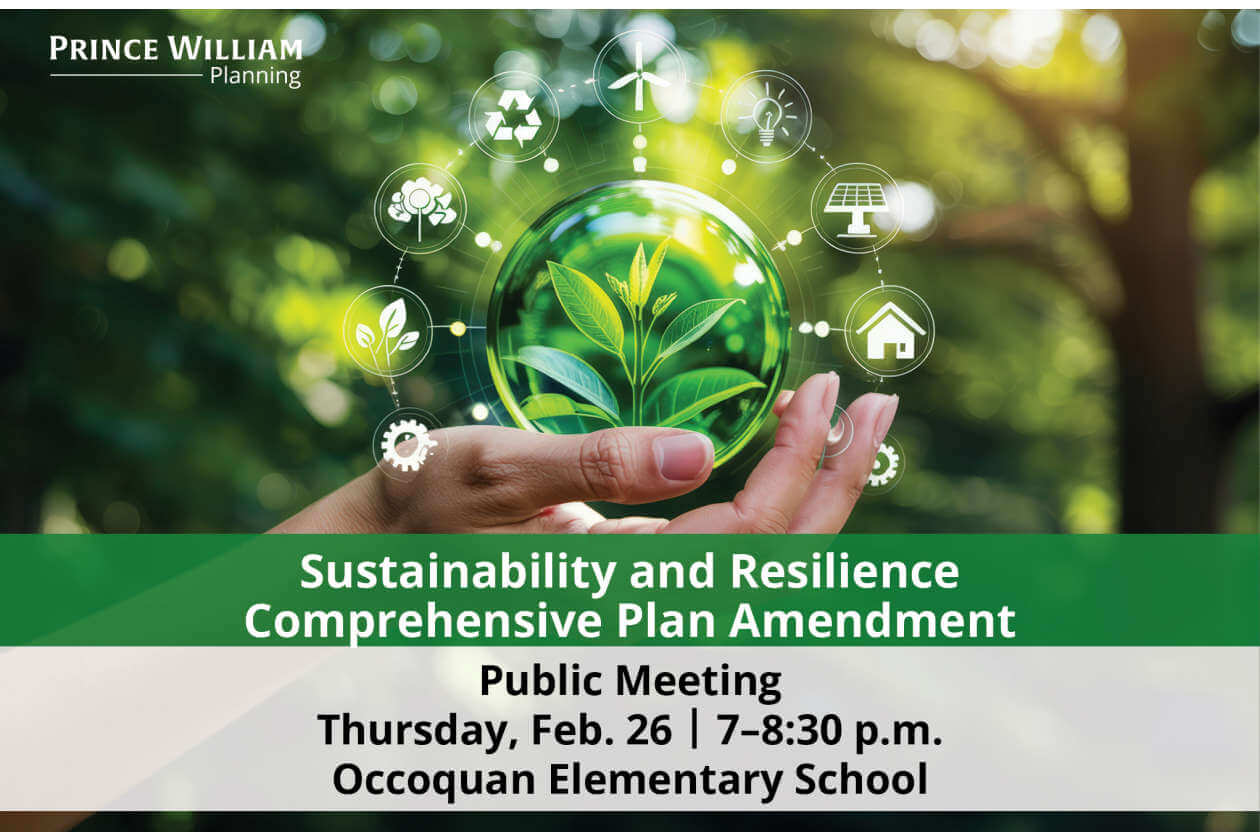 Prince William County is updating the Comprehensive Plan to better address issues of sustainability and resilience and you can get involved! Learn about the process and why sustainability and resilience are important for our community to address. The meeting will include a short presentation and interactive exhibits.