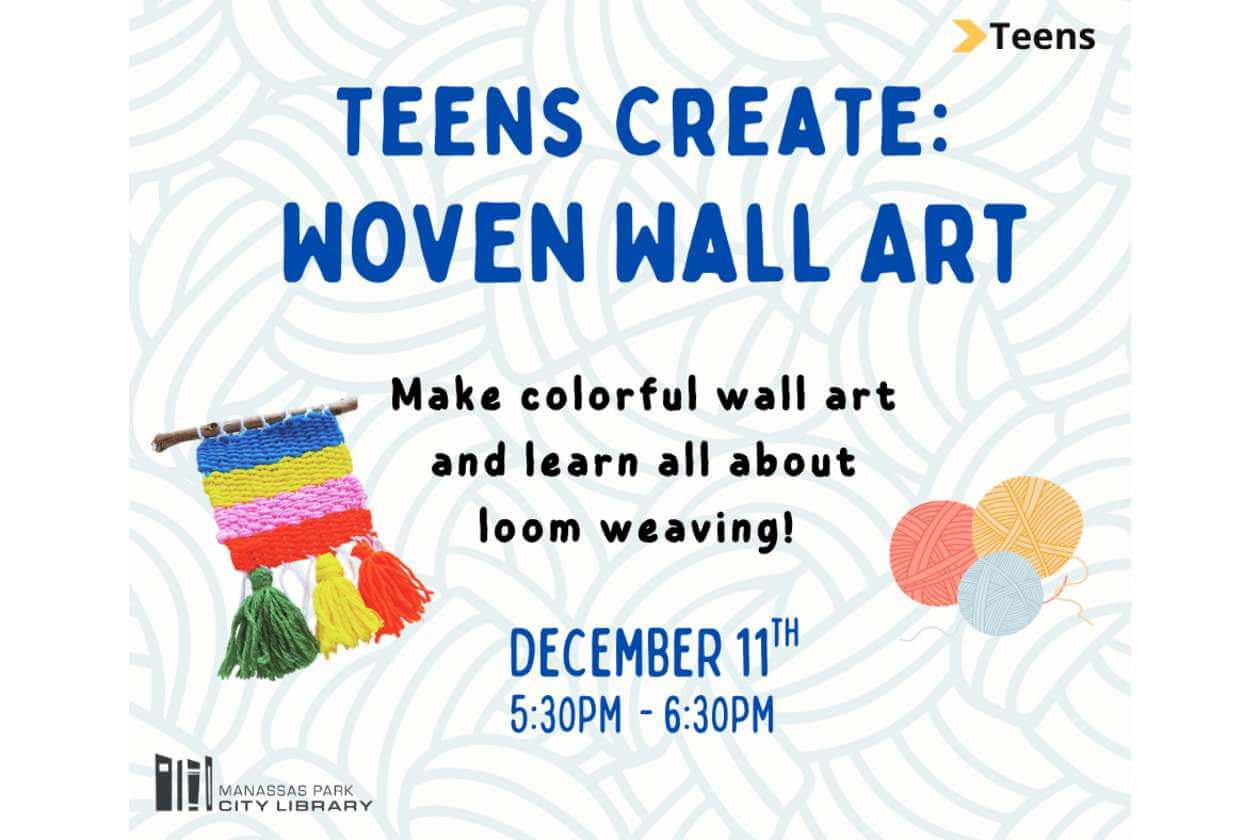 Come create beautiful woven wall art in our Teens Create program! Make your own one-of-a-kind piece of handmade art; or a thoughtful gift, perfect for the holiday season!