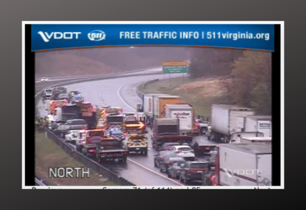 STAFFORD COUNTY — All lanes of Interstate 95 northbound are closed in Stafford County at mile marker 147, just south of Exit 148/Quantico Marine Corps Base, for a multi-vehicle crash.