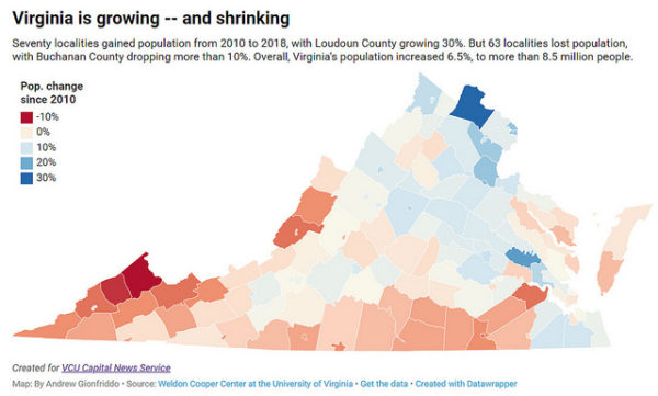 RICHMOND — So far this decade, Virginia has grown — and shrunk — in population.