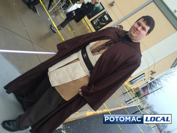 Hordes of costumed fans are standing in line for the first showing of the latest movie in the Star Wars franchise “Star Wars: The Force Awakens.”