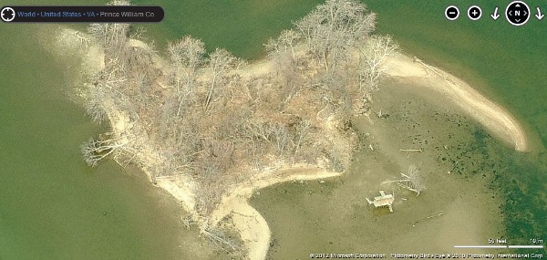 Occoquanwaterfront.com reports a small island off the shores of Belmont Bay in Woodbridge is on the marketplace.